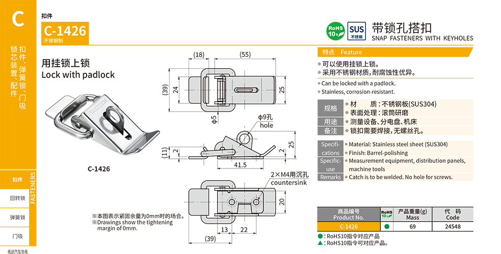 带锁孔长颈搭扣