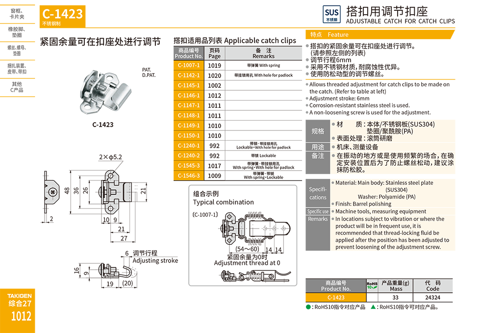 搭扣用调节锁扣